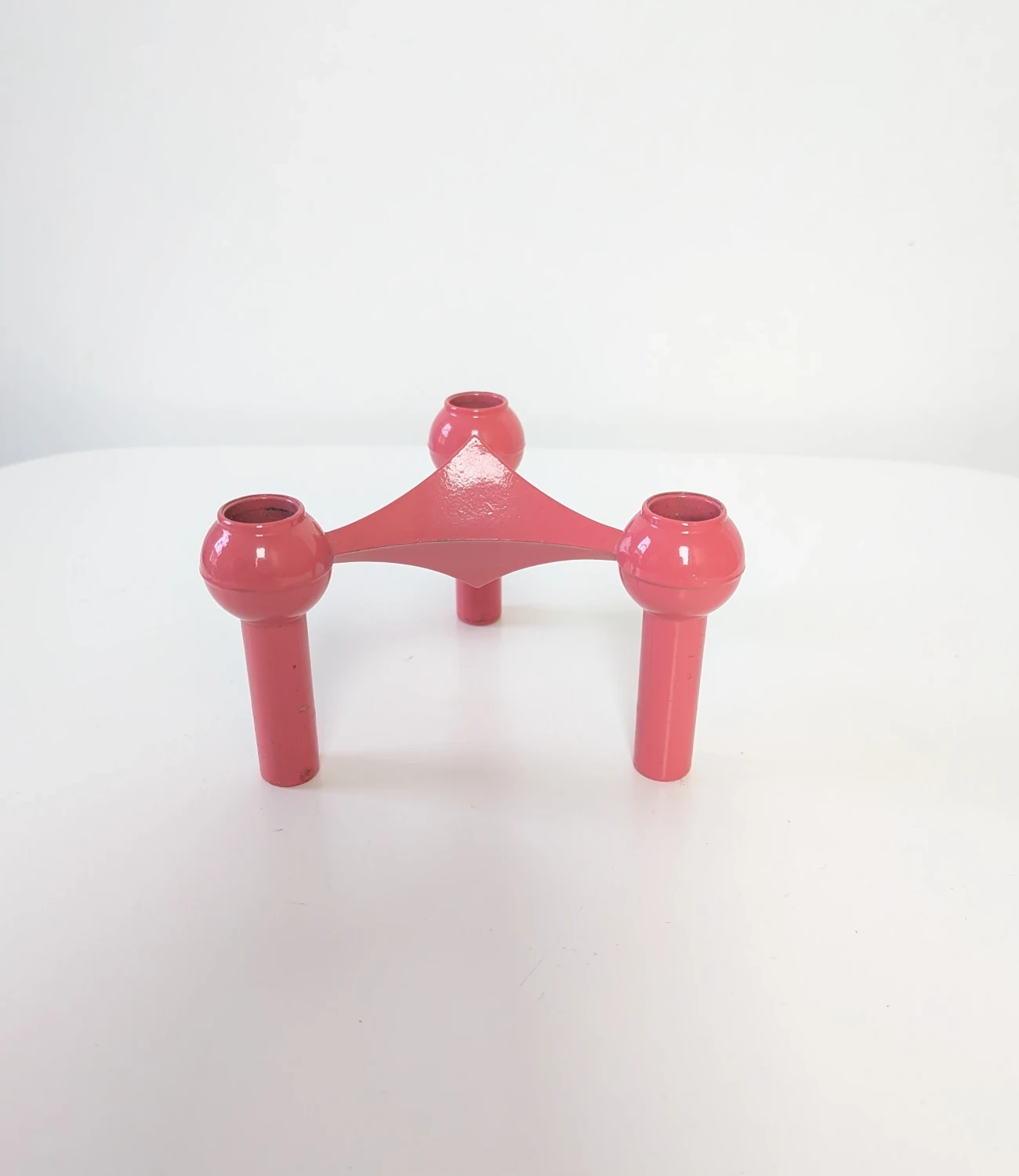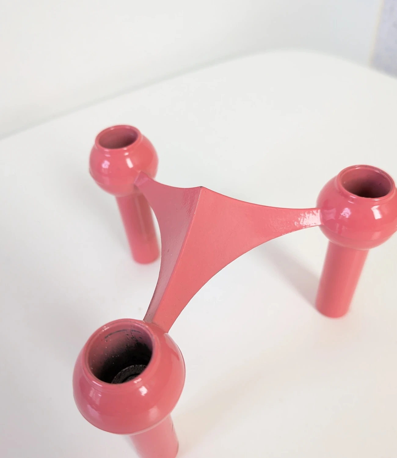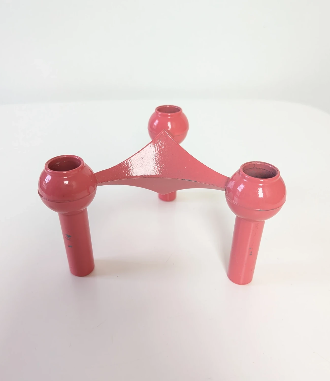 Nagel S22 candleholder in pink lacquered metal, in very good to excellent condition.