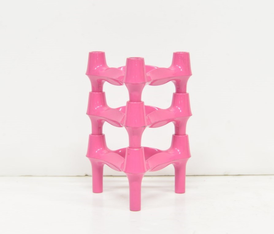 Lot de 3 bougeoirs BMF en métal laqué rose.