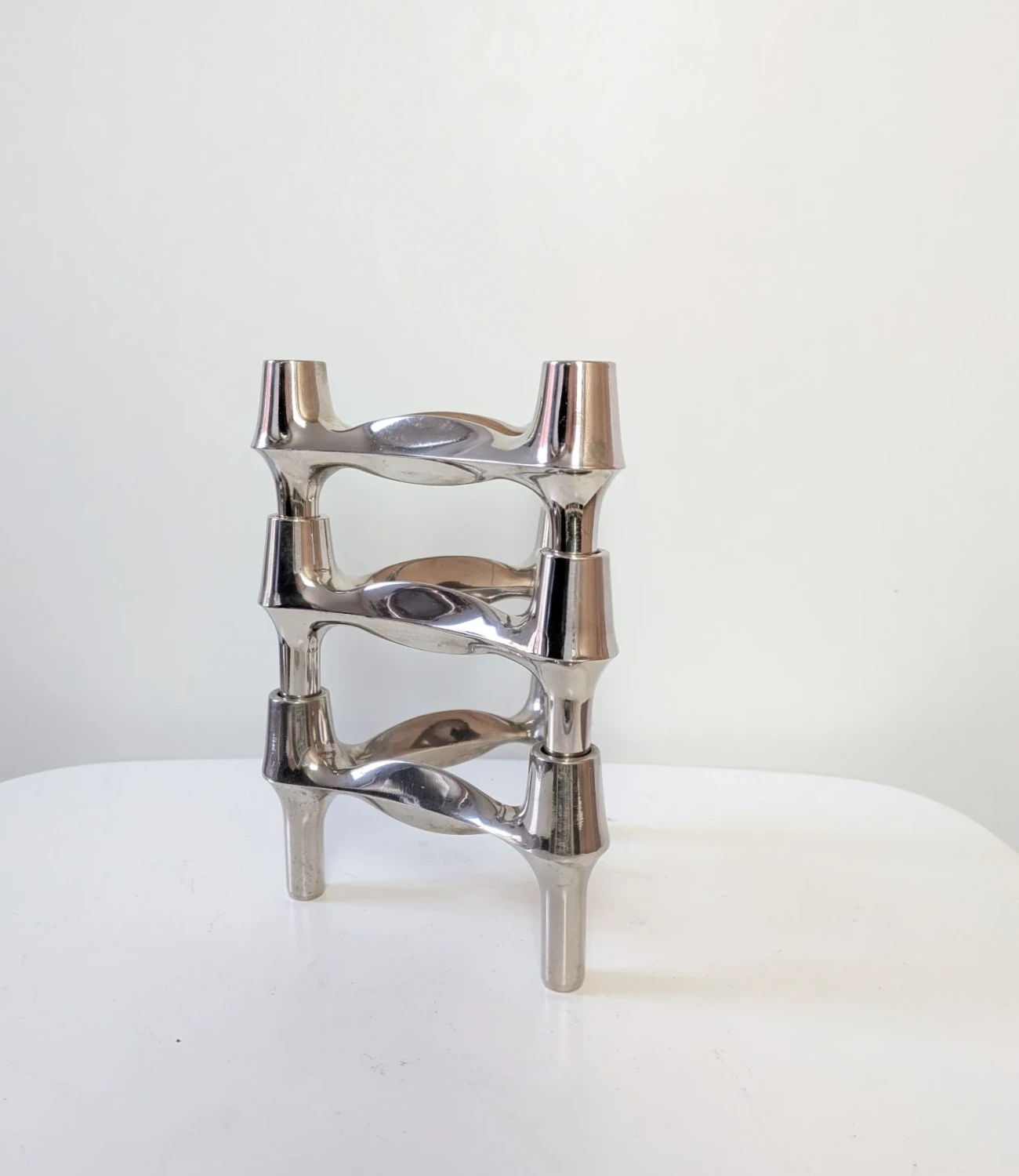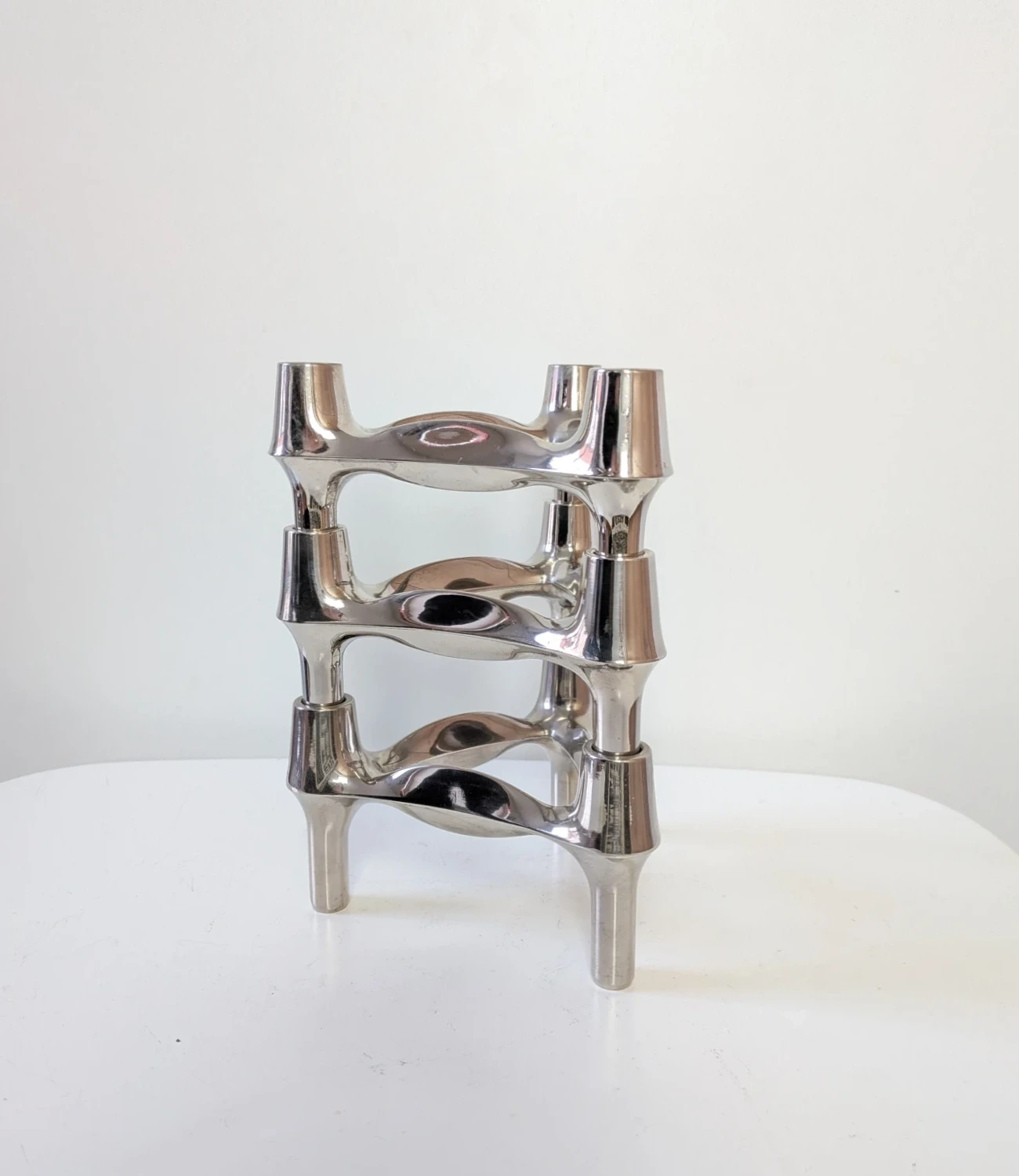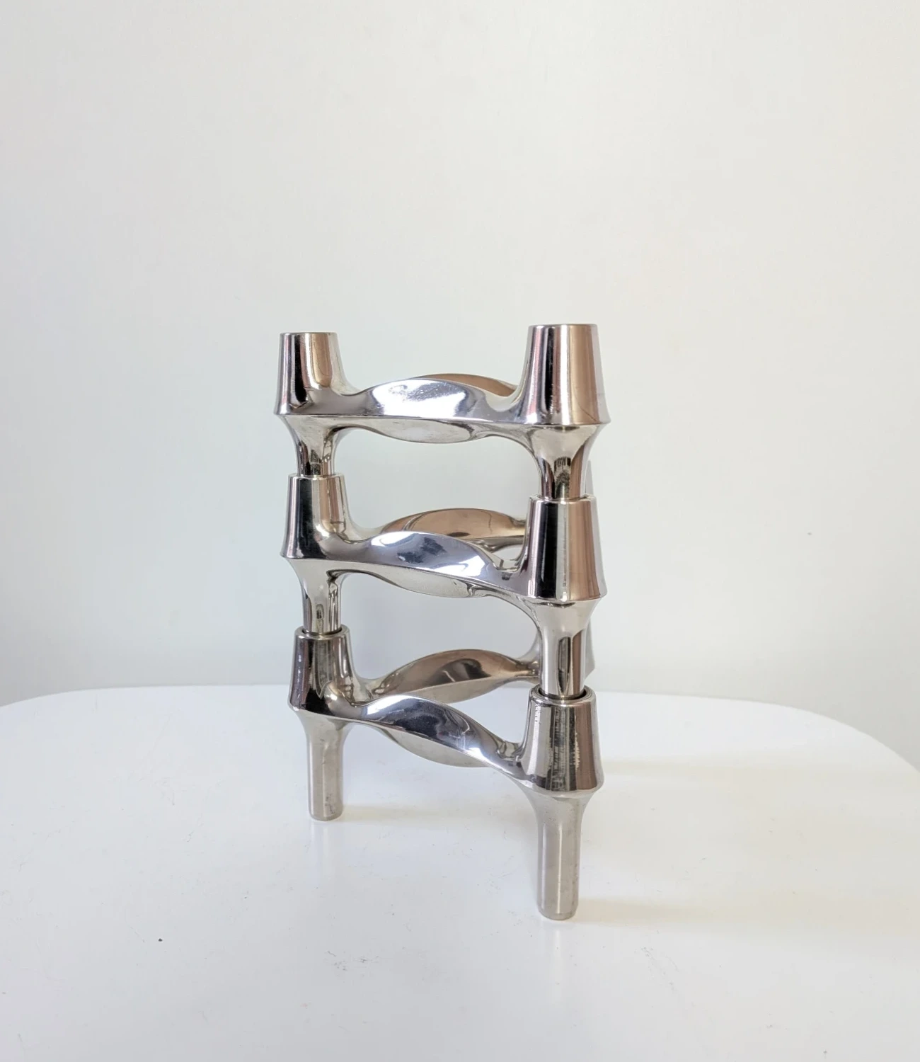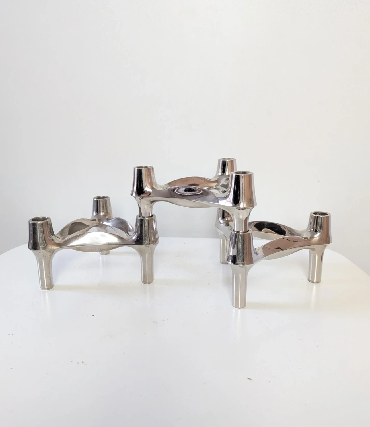 Lot de 3 bougeoirs BMF « Combi-leuchter », des années 70, en métal chromé.