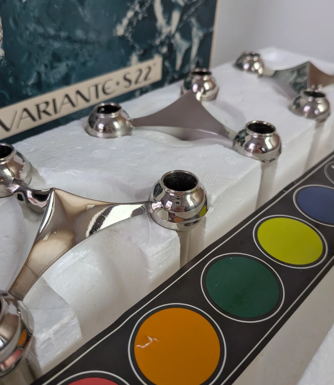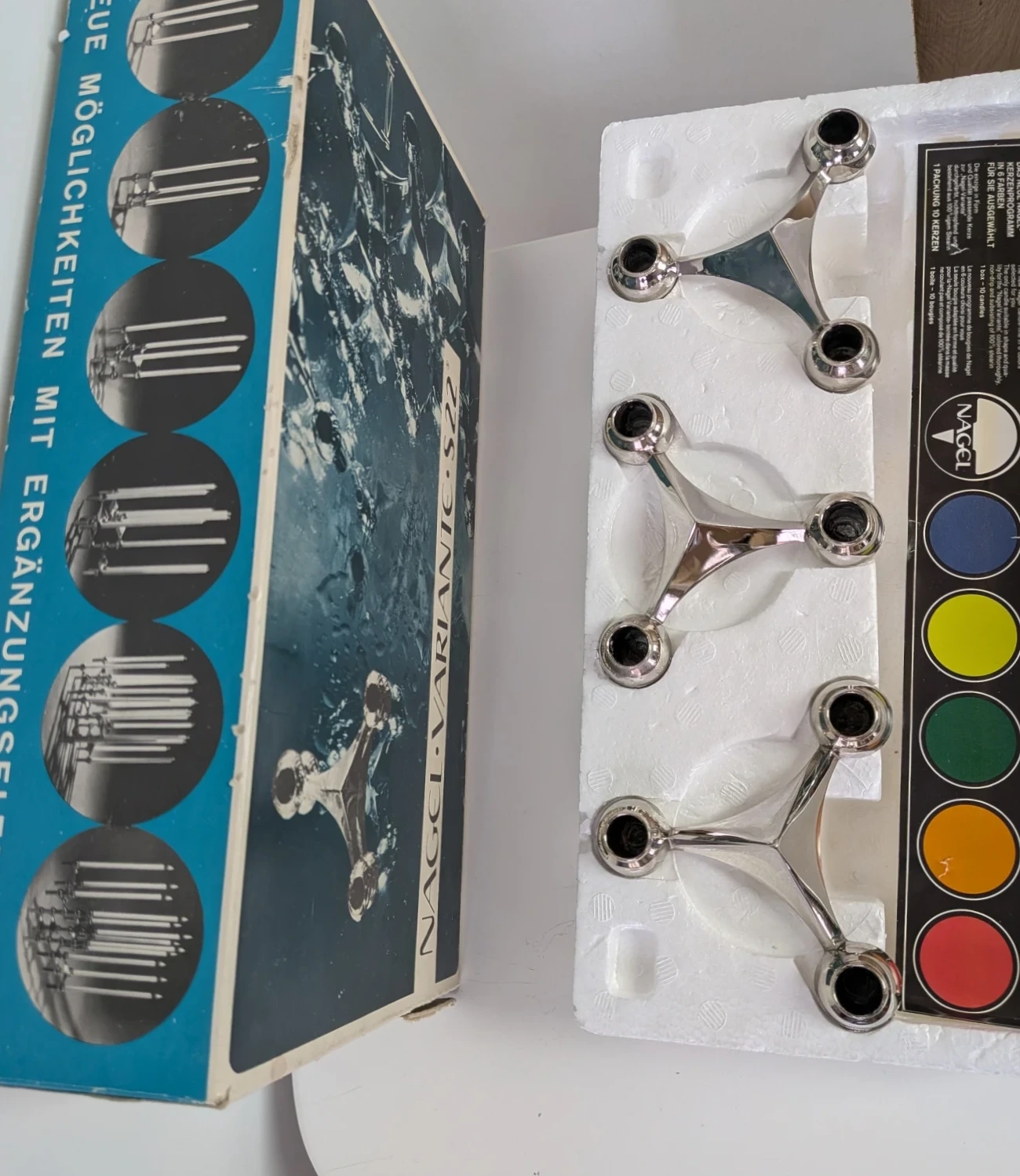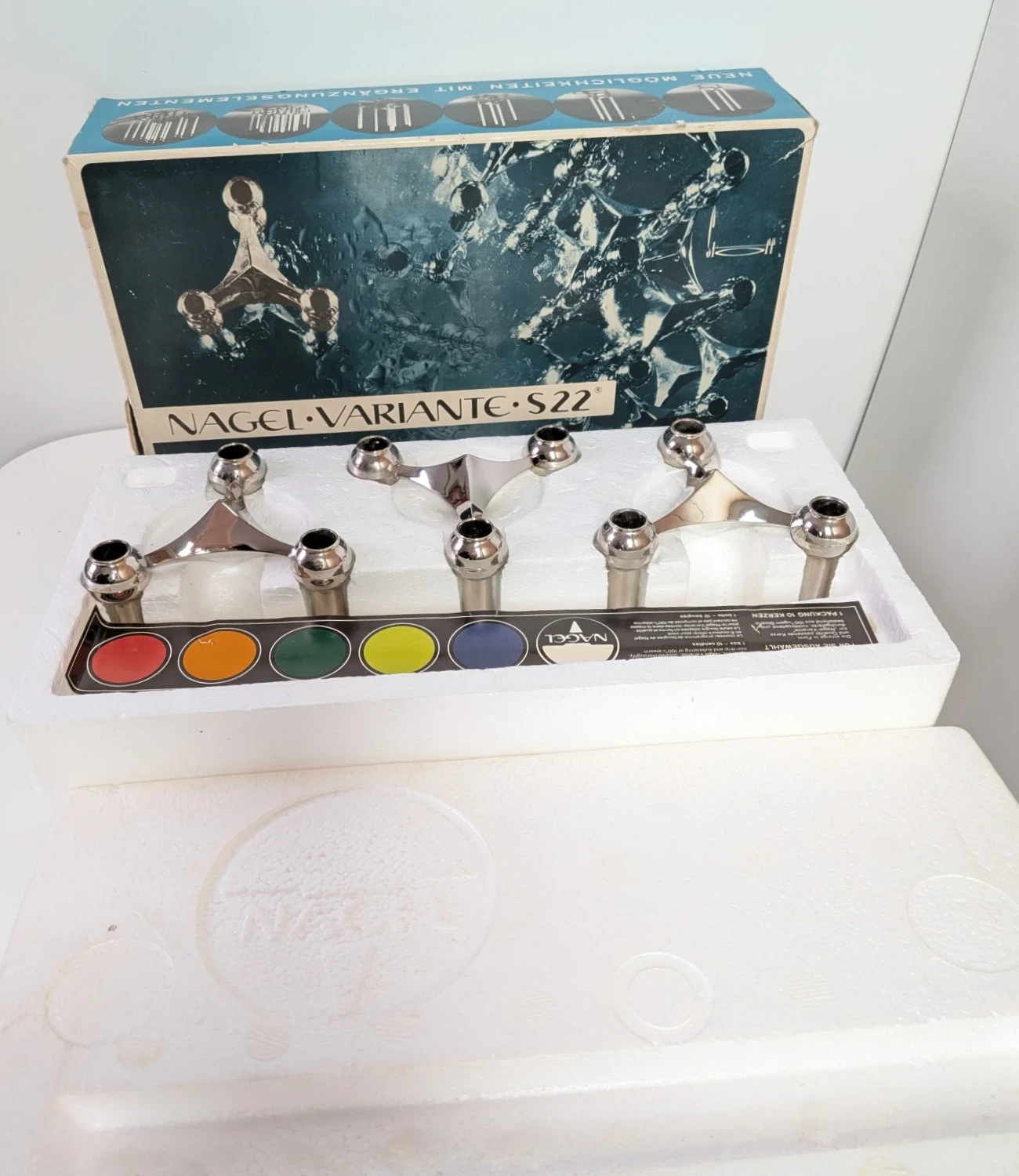 Ensemble de 3 bougeoirs Nagel S22 des années 70, dans leur boîte d’origine