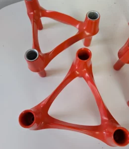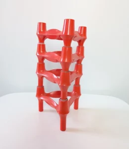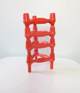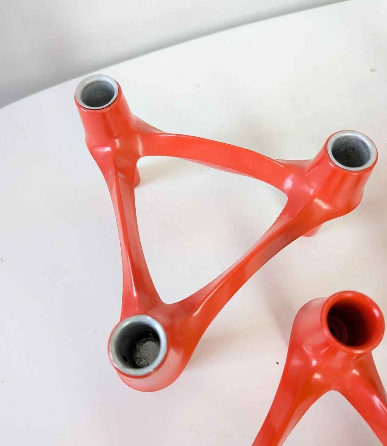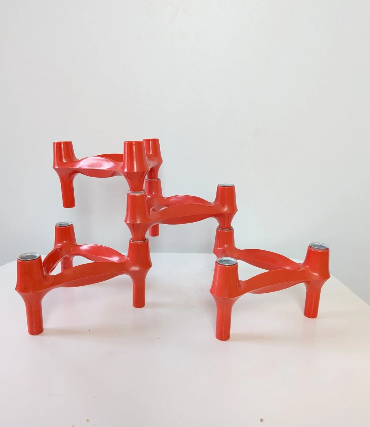 Lot de 4 bougeoirs BMF « Combi-leuchter » , des années 70, en plastique orange (c’est la seule version plastique qui existe).